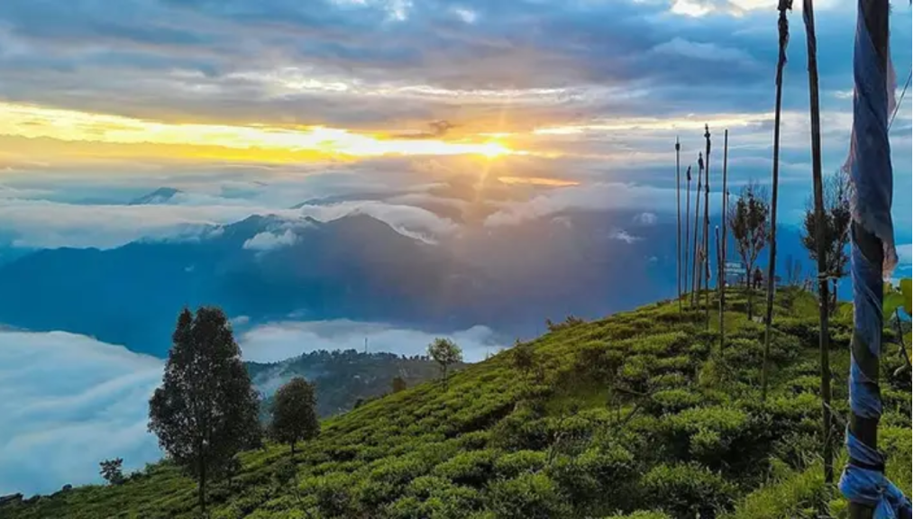 Just 32 km from Darjeeling, Kurseong offers a slower, quieter alternative to its glamorous neighbour. Known as the “Land of White Orchids”, this small town is perched at 1,482 metres and greets you with rolling tea gardens, colonial-era schools, and breathtaking sunsets.